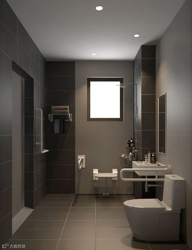 马桶区和淋浴区是老人使用最频繁的地方,建议增加扶手设计,来起到助力和支撑的作用,确保老人在使用时的安全性。