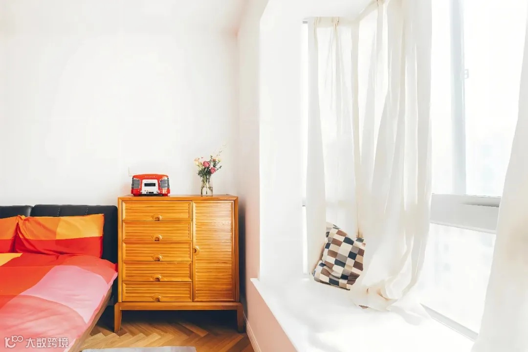 窗帘的安装让卧室空间延伸至飘窗内部,从视觉上扩大了空间,特别适用于面积较小的卧室。