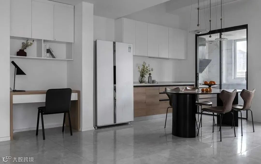 原建筑规划让厨房非常狭小,两个人同时进去转身都会困难,现在压抑的小厨房被重新利用,并设置宽敞的岛台,左右划分出开放式中西厨。