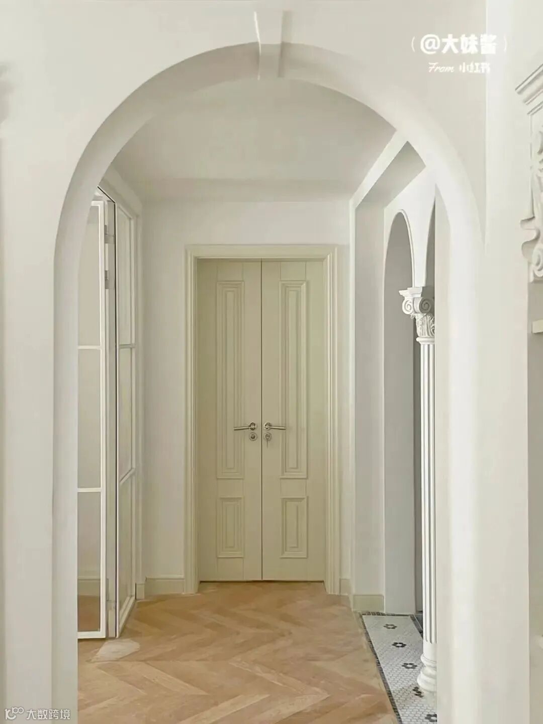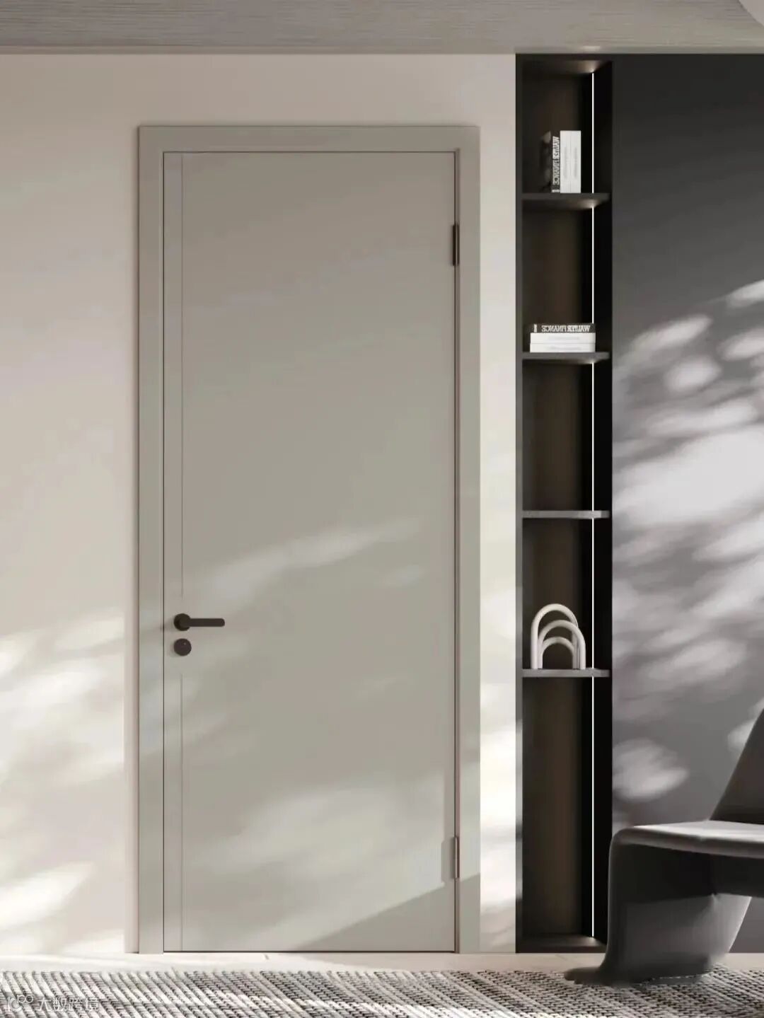 房门与墙面可以看做一个整体,把房门做成与墙面颜类似的效果,也是非常适合的选择。