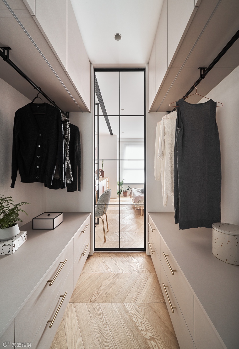 作为入门第一印象的鱼骨拼木地板,从玄关一路铺排至卧室,连结起不同的空间格局,创造一致的自然气质。
