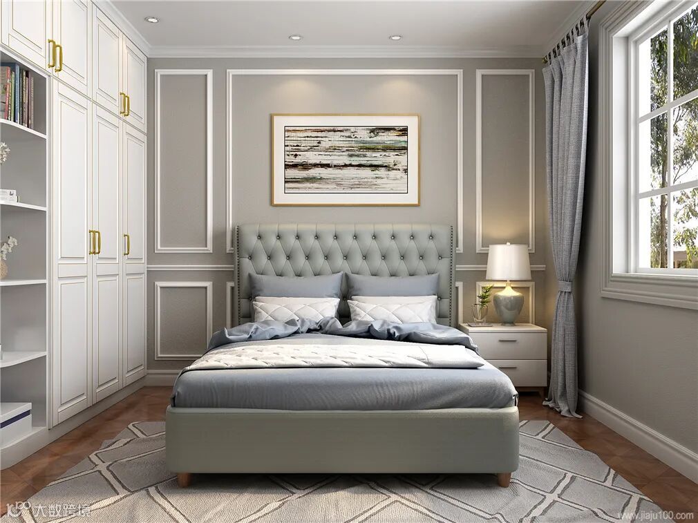 黑白色叠搭的床品、装饰画突出高级感,非常耐看。