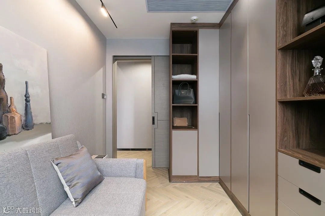 来看看家里最应该顶天立地的衣柜,到顶的衣柜视觉上整体感更强。