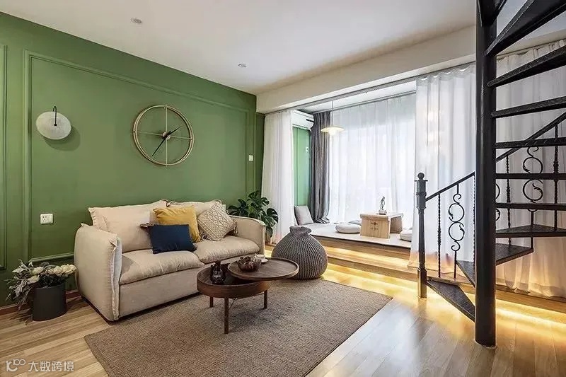 绿色是一种亲近大自然的色系,把家里的墙面刷成绿色调的话,那么整体空间都会充满自然绿意的氛围感。