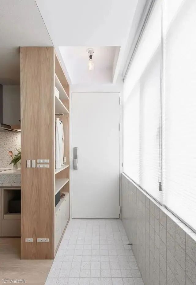 一般来说玄关区域面积都不会很大,如果有窗户的话,选用布艺窗帘会增加空间的拥挤感,这个时候百叶窗就是比较好的选择了,安装百叶窗会让空间更加通透灵动。