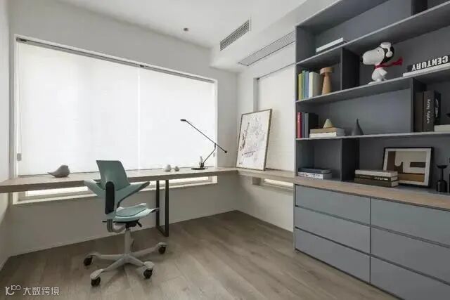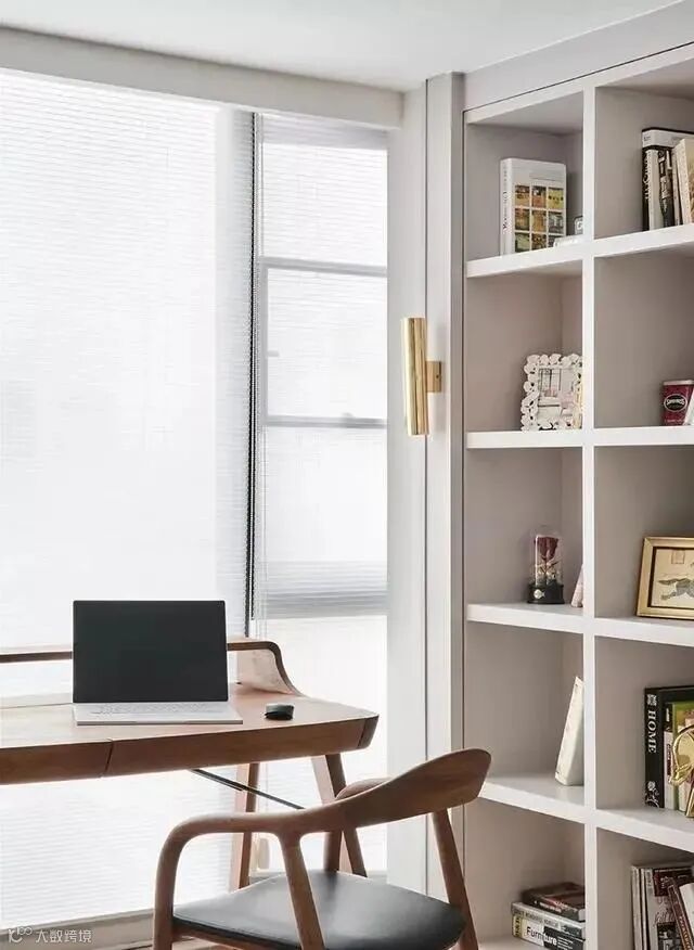 书房可以安装较简约的百叶窗,可以营造出一个静谧明亮的工作和休闲的区域。