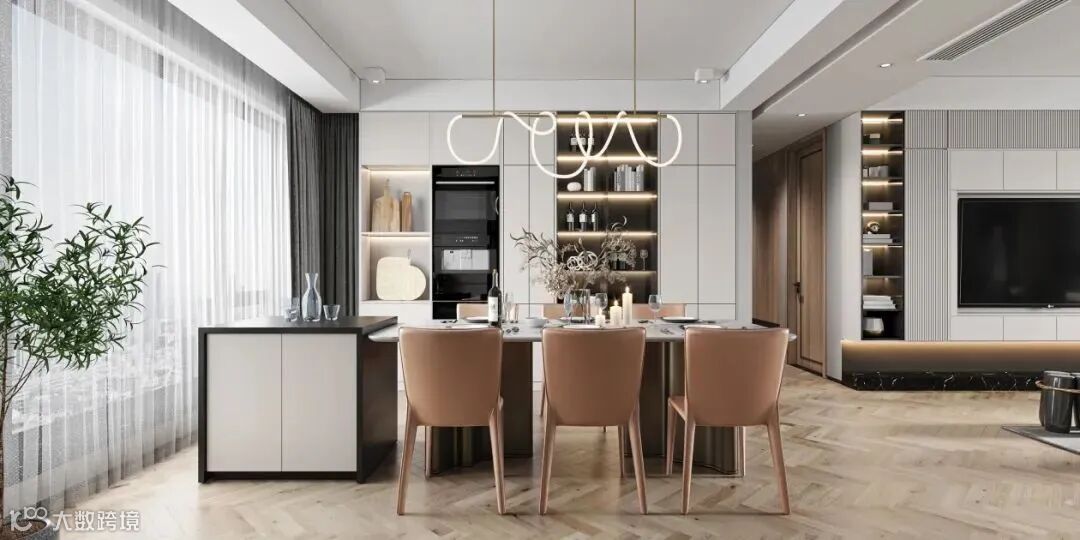 ②餐厅面积较大,可根据层高设计到顶式餐边柜,中部可留空作台面