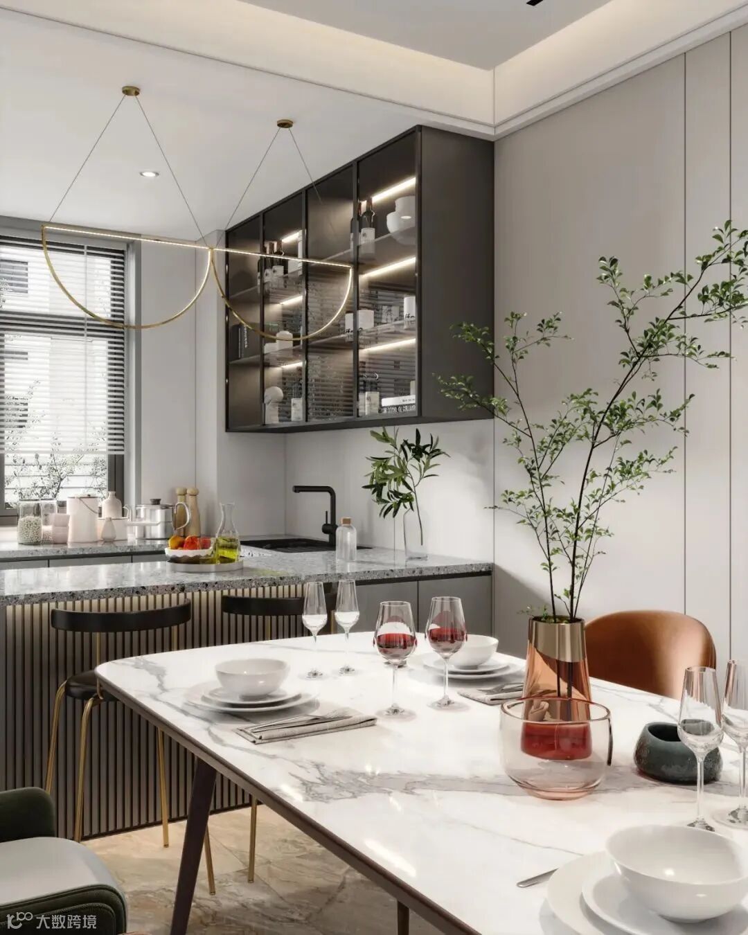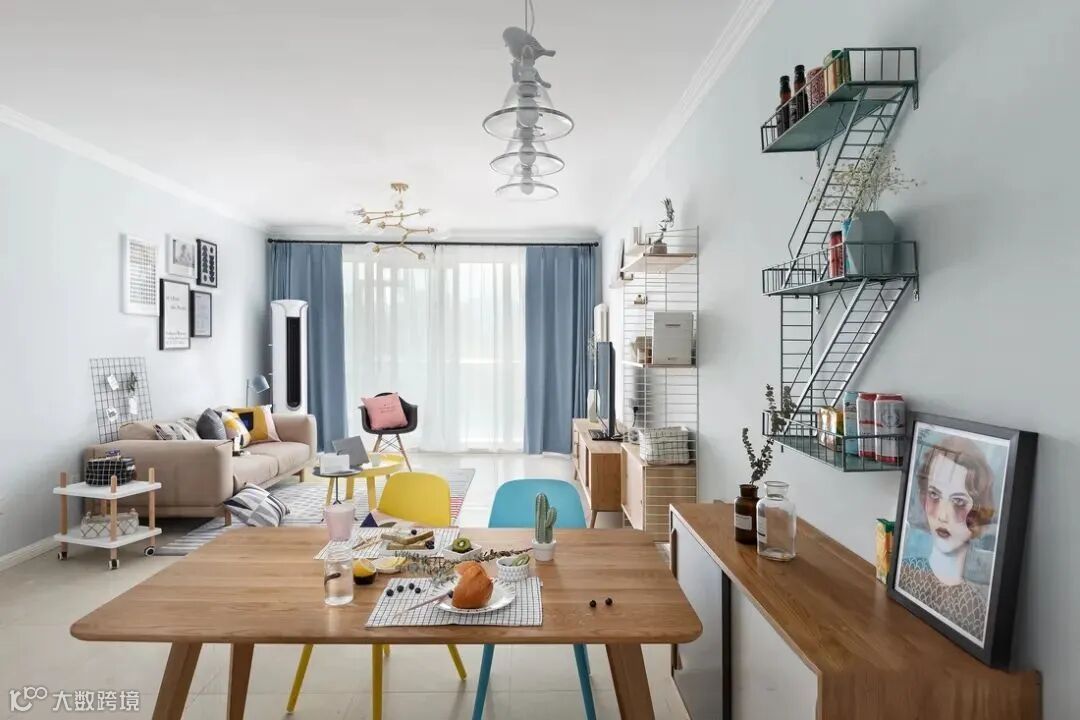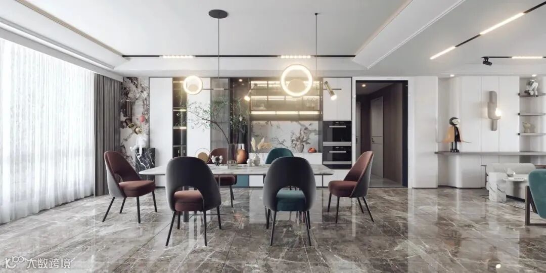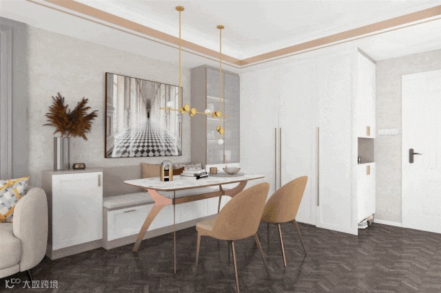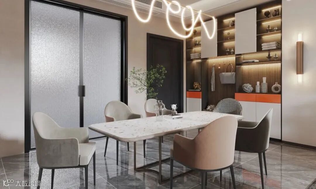 ①餐厅面积较小,首选半高柜柜体,顶部作为台面,可避免空间压抑