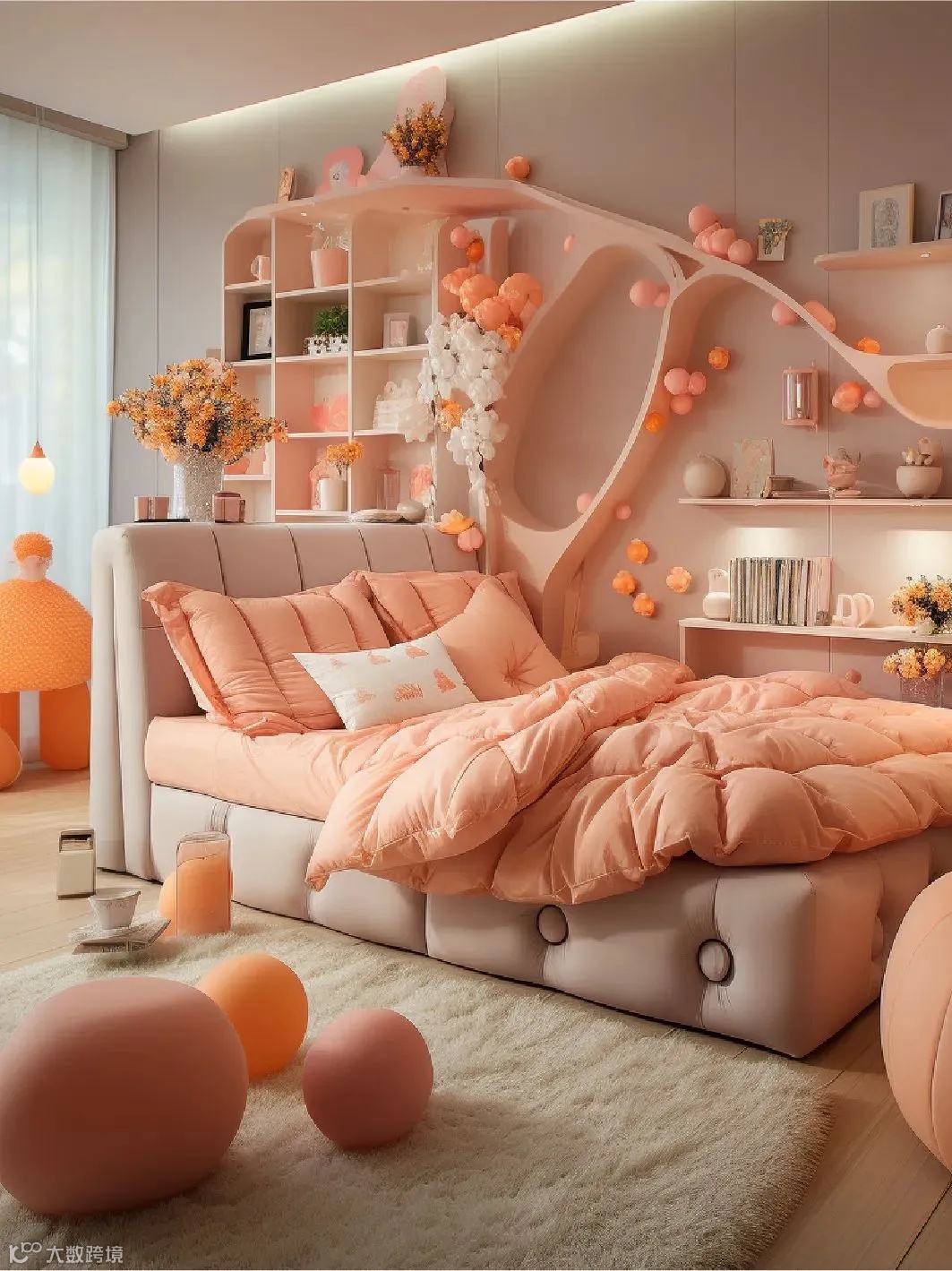 柔和桃在儿童房间中同样能够展现魅力。将其应用在墙壁、家具或装饰品上,能营造出充满活力与温馨感的氛围,更能激发孩子们的想象力和创造力。