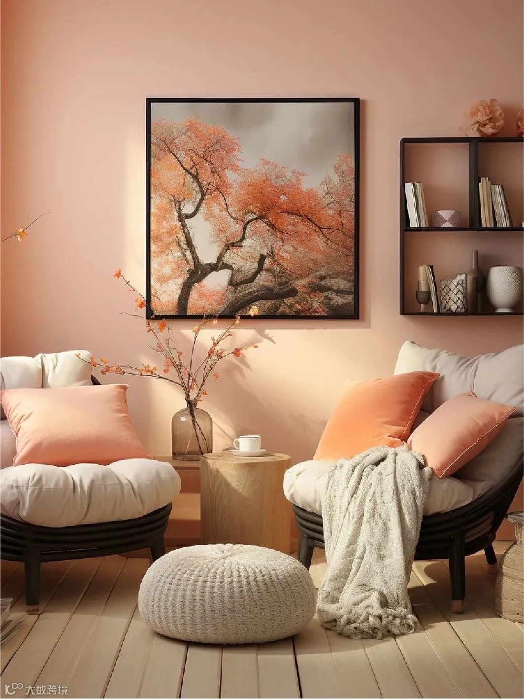 将舒适、温柔的柔和桃(Peach Fuzz)注入家居室内中,无论是油漆墙面、家居装潢,还是图案中的小点缀、小配饰,柔和桃都能给人柔和温暖的感受,为个性化的专属空间注入疗愈、静谧的气息。