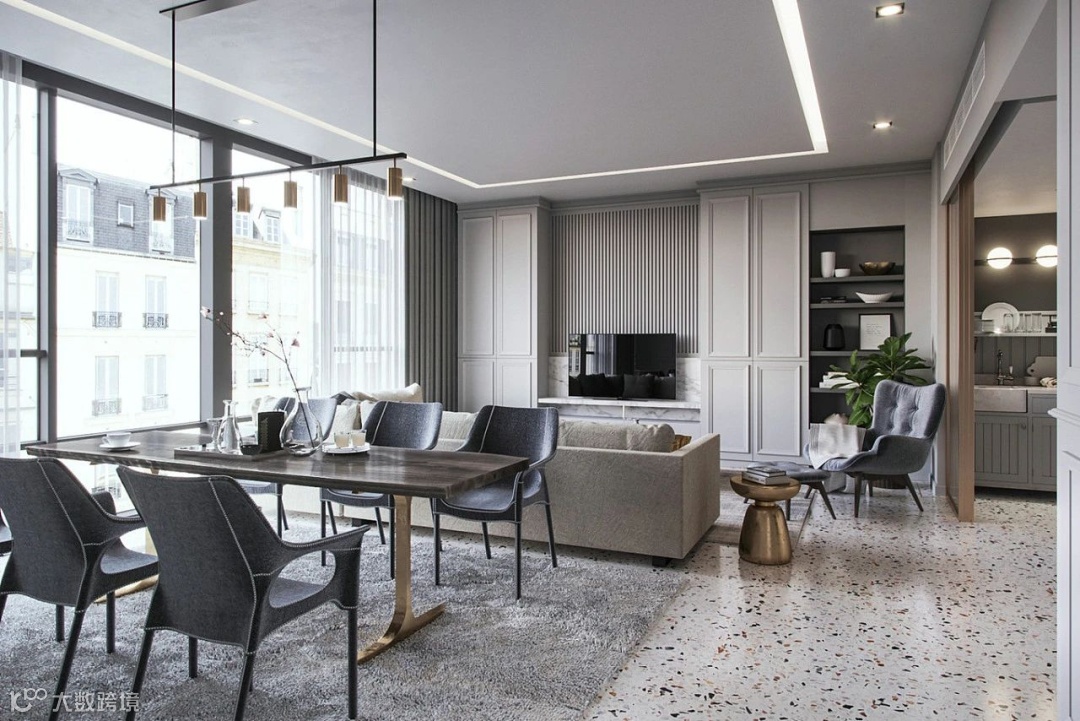 现在的设计经常会将餐厅和客厅连成一体,