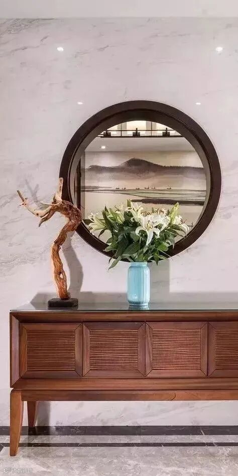 但是现如今,新中式风格的流行,不仅颠覆了以往的沉闷与压抑,更是基于现代人的审美及生活需求,将传统元素和现代设计完美结合,化繁为简、回归质朴,演绎出了一个个充满意境而又韵味无穷的玄关空间,给人带来实用与美感的双重享受。