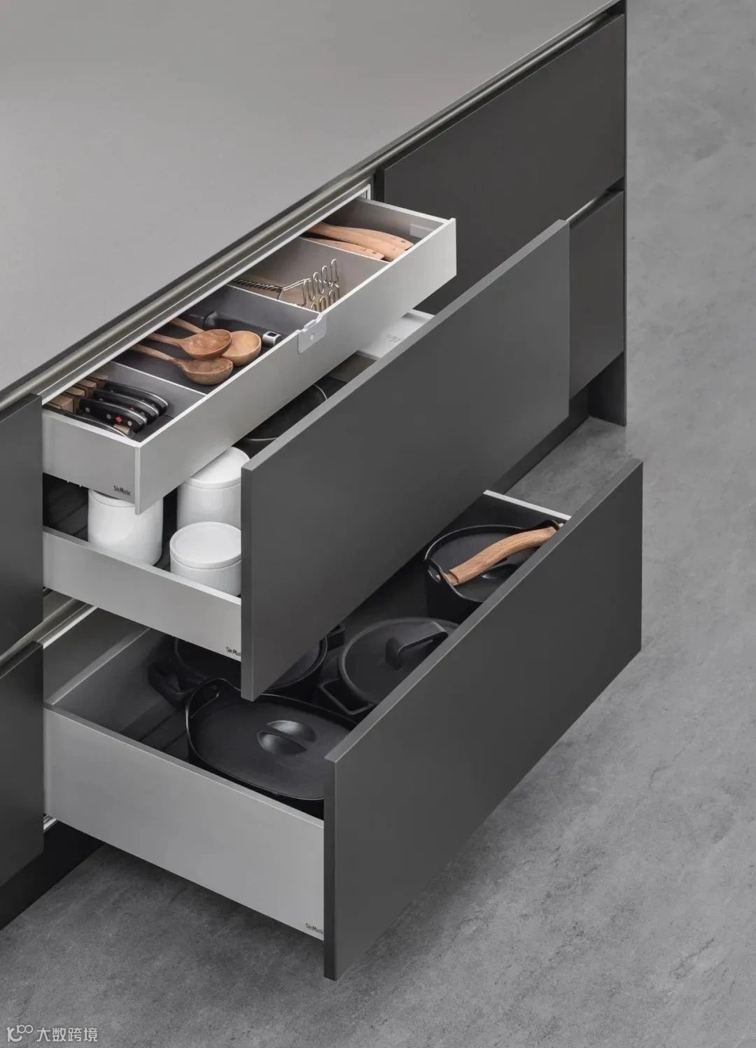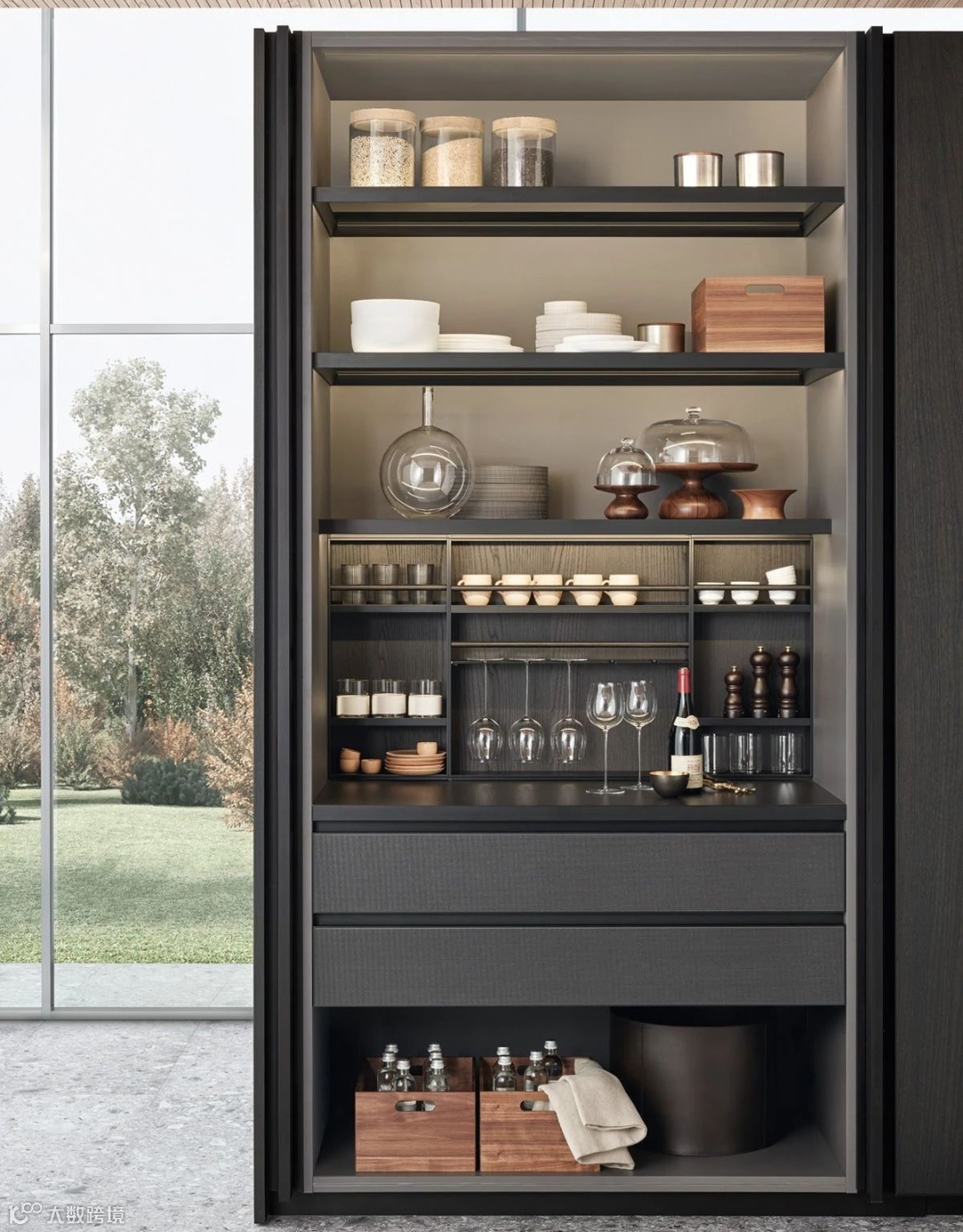 定制厨柜,应该是厨房做好收纳的前提基础。毕竟定制的最大优势,就是能让空间得到最大利用。所以,好的整体厨房设计,一定会重点解决厨房的收纳问题。