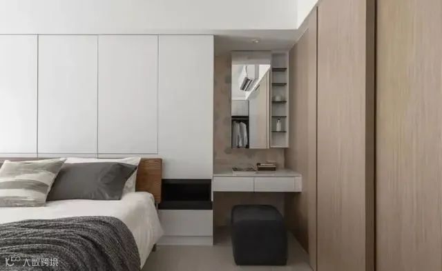 如果卧室面积没有那么大,位置可能不太够弄一个梳妆台时要怎么办呢?可以选择弄一个一体式梳妆台,不仅满足女性化妆的需求,还能实现多重收纳,让卧室空间得到充分有效的利用。