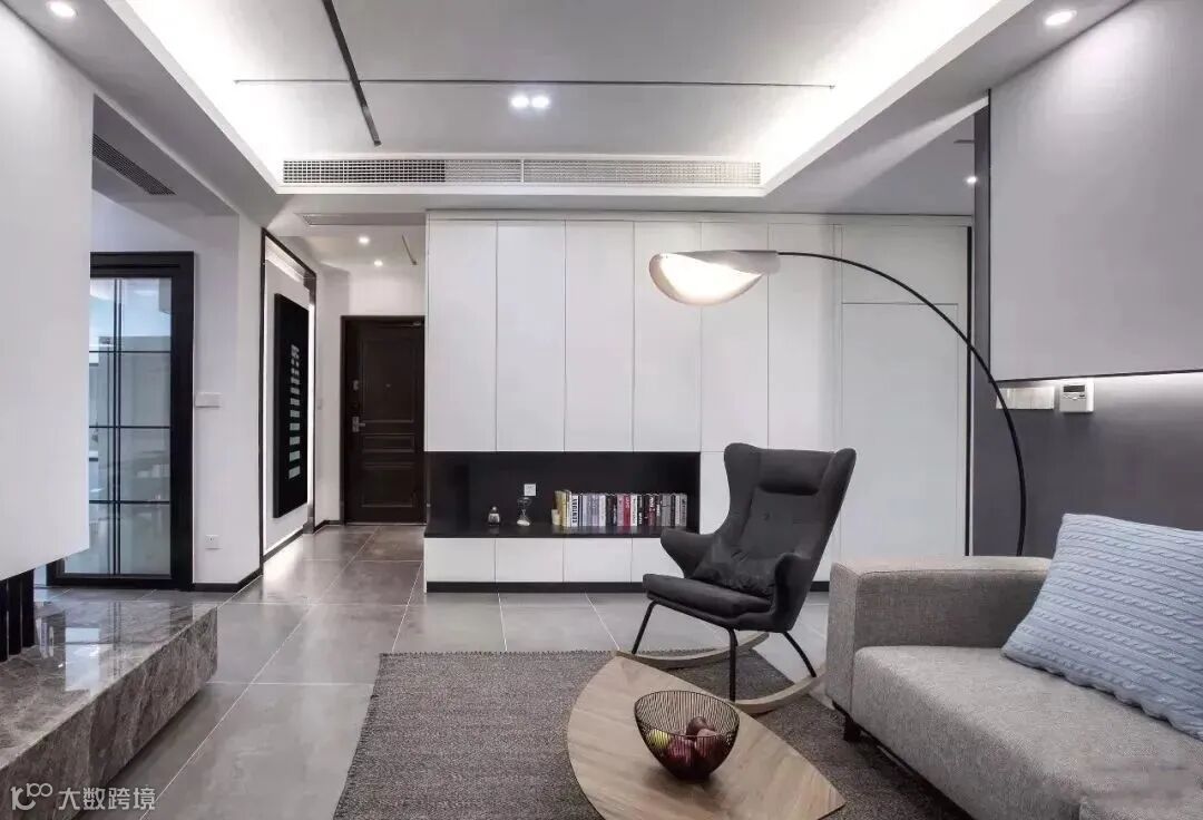 轨道灯搭配前面的筒灯和灯带,可以做成"见光不见灯"的无主灯设计,单独做轨道灯的话,可以不用做吊顶,还可以随意拆卸,不仅应用在客厅,还能在玄关、餐厅和厨房,照射到一些照不到的"死角",让家更明亮。