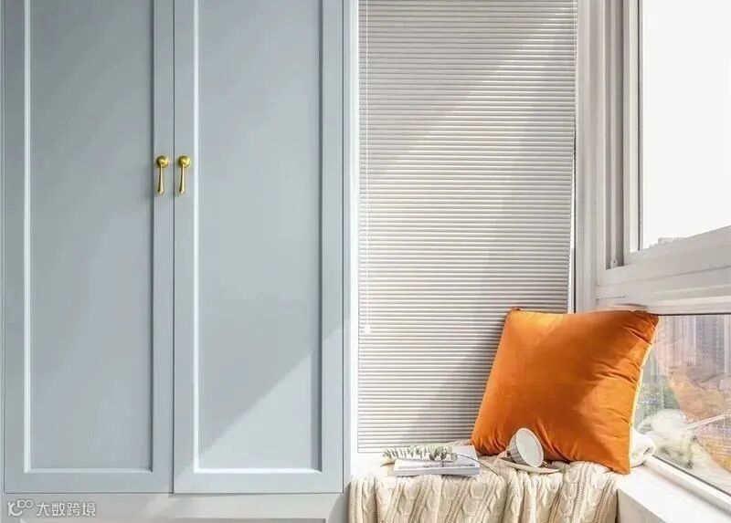 甭管阳台用不用纳入室内,都不耽误咱们两头分区利用,最常见的是一侧做收纳柜,另外一边做家政区,同时上面也不会耽误了晾晒,搬个凳子过去又能做休闲。