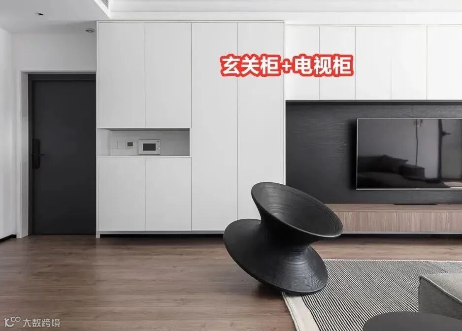 ●连着其他空间的柜子做一体化收纳,比如玄关柜+餐边柜、玄关柜+电视柜