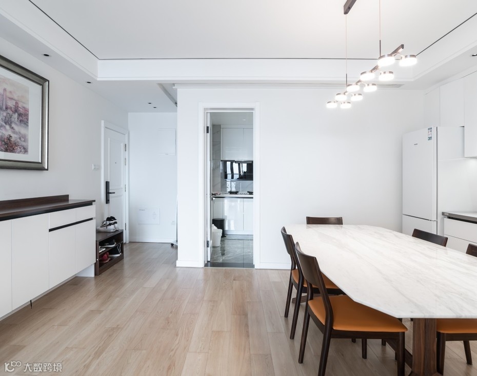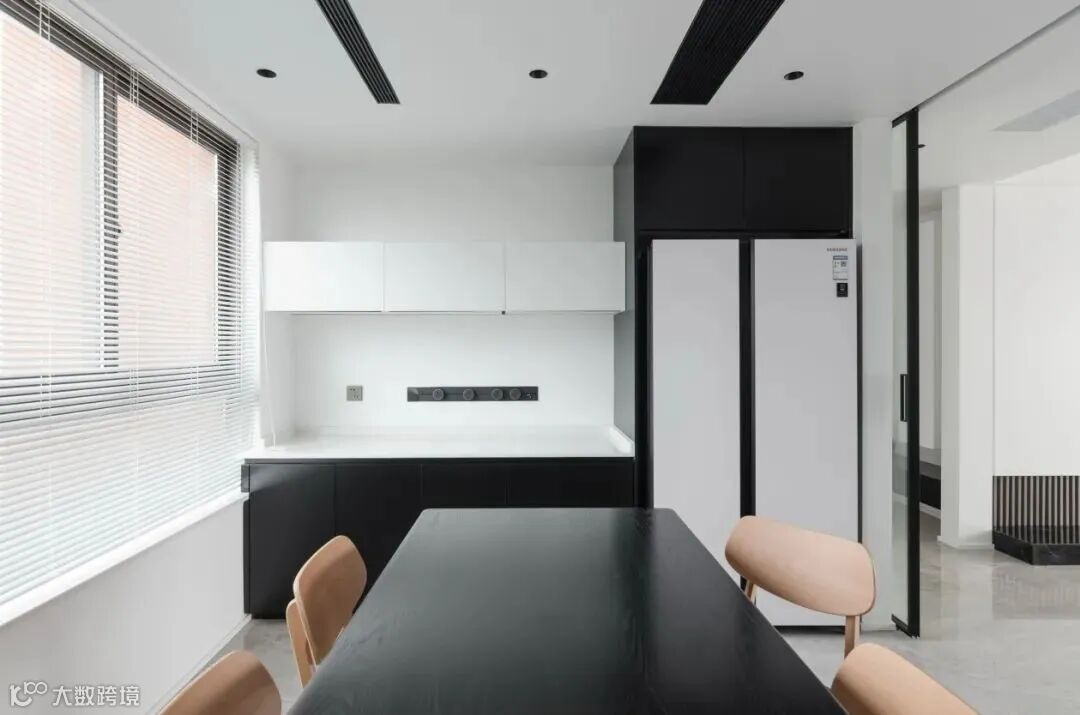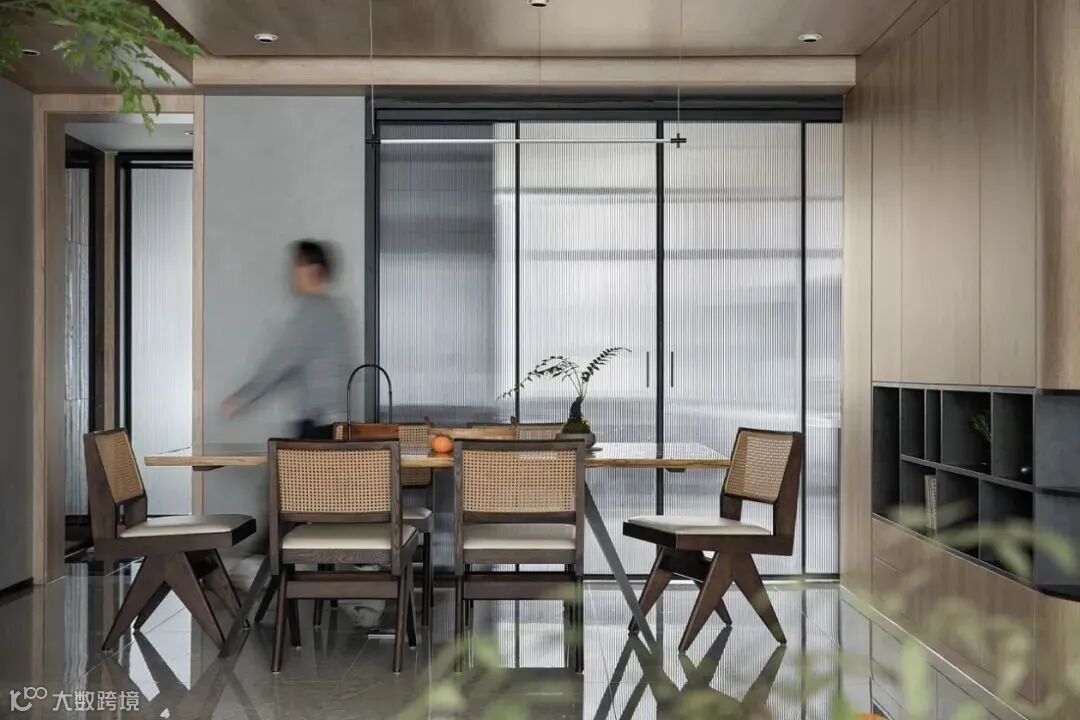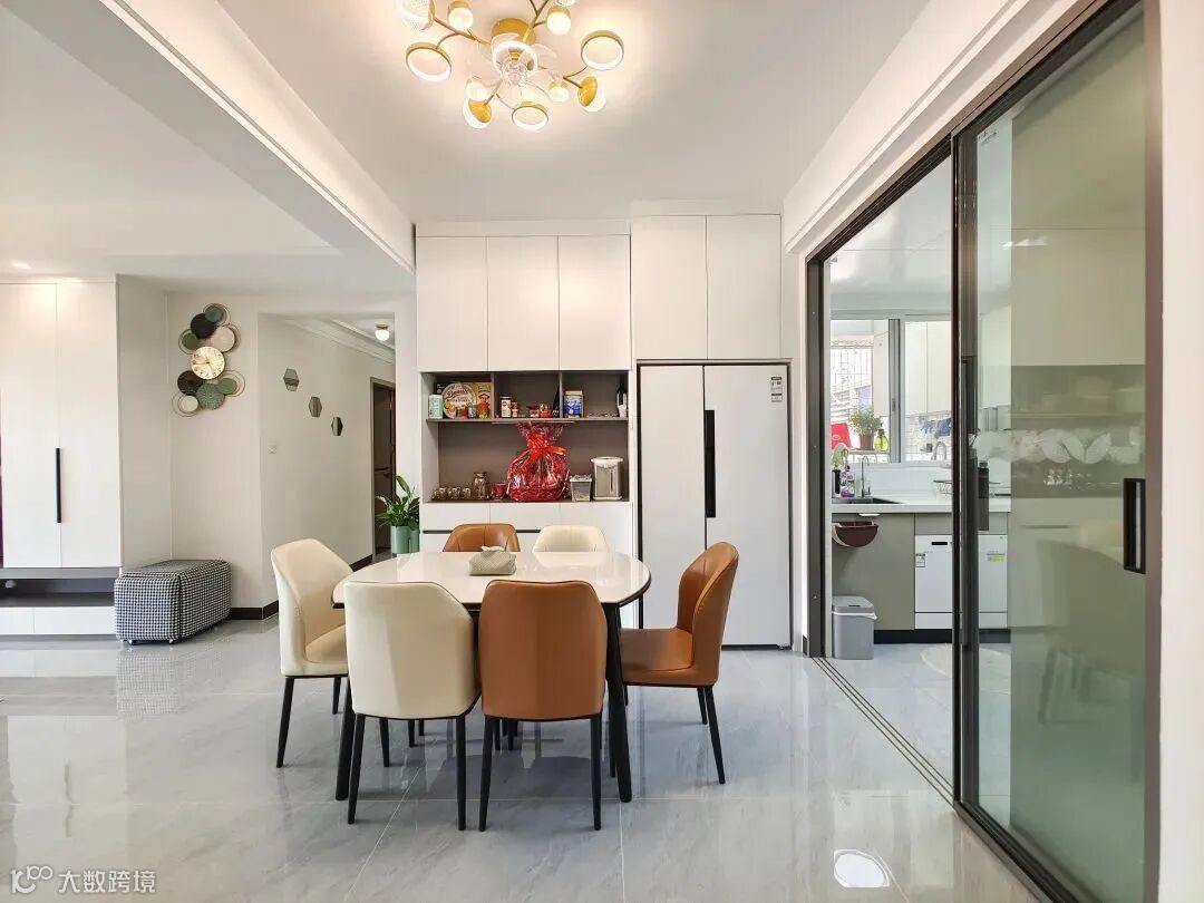 3.有钱有颜,建议嵌入式推拉门,配合装饰墙、收纳柜等嵌入,完美实现开放式厨房。