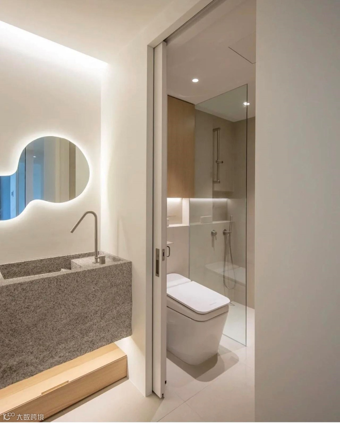 小卫生间想要承载更多的功能,就需要释放更多的内部空间,内开门显然不适宜,采用外开门或推拉门设计,释放出开门的空间,达到扩充空间的目的。
