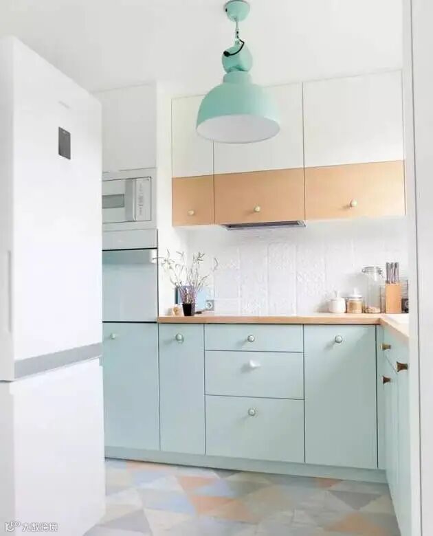 如果你对以上几种色调没有特别的感觉,不妨尝试一下其他色系的橱柜,如果搭配得当的话,做饭的你时刻都会拥有一份好心情!