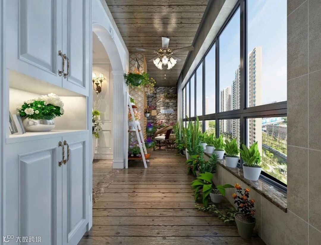 在阳台的一侧,或者整个空间,加建一些储物柜,可以收纳平时用的生活用品,或提高空间美感的植物,甚至可以为阳台,量身定制一组储物柜,整洁实用。
