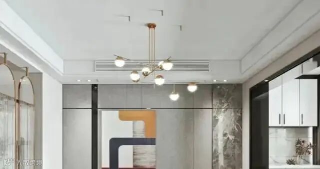 这种做法适合要安装中央空调或新风系统的家庭,可以留出足够的出风口位置,又不会占用太多顶部的空间。