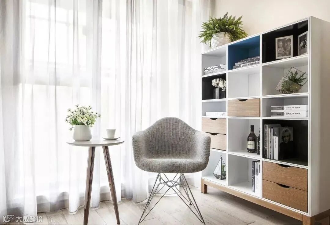 想拥有书房,那么阳台是个不二之选,纳入客厅后,阳台也可设计阅读角,提高客厅阅读氛围。