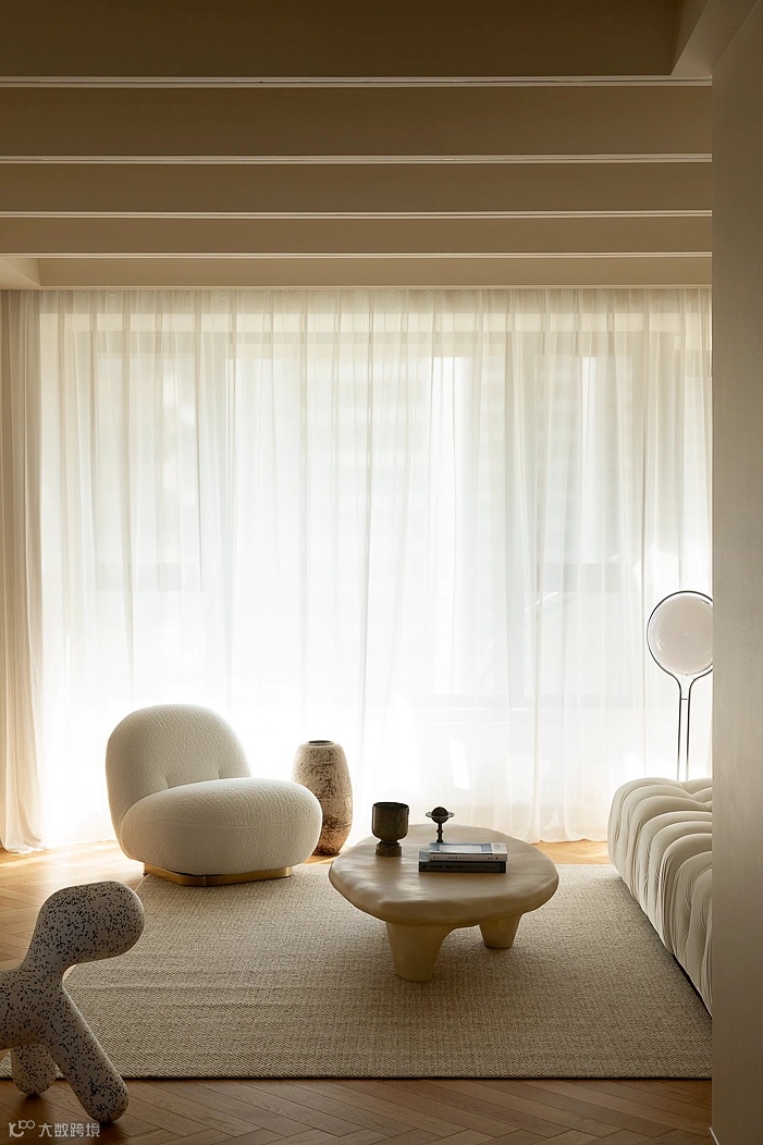 把阳台纳入了客厅,在空间上合二为一,客厅区域显得更大。