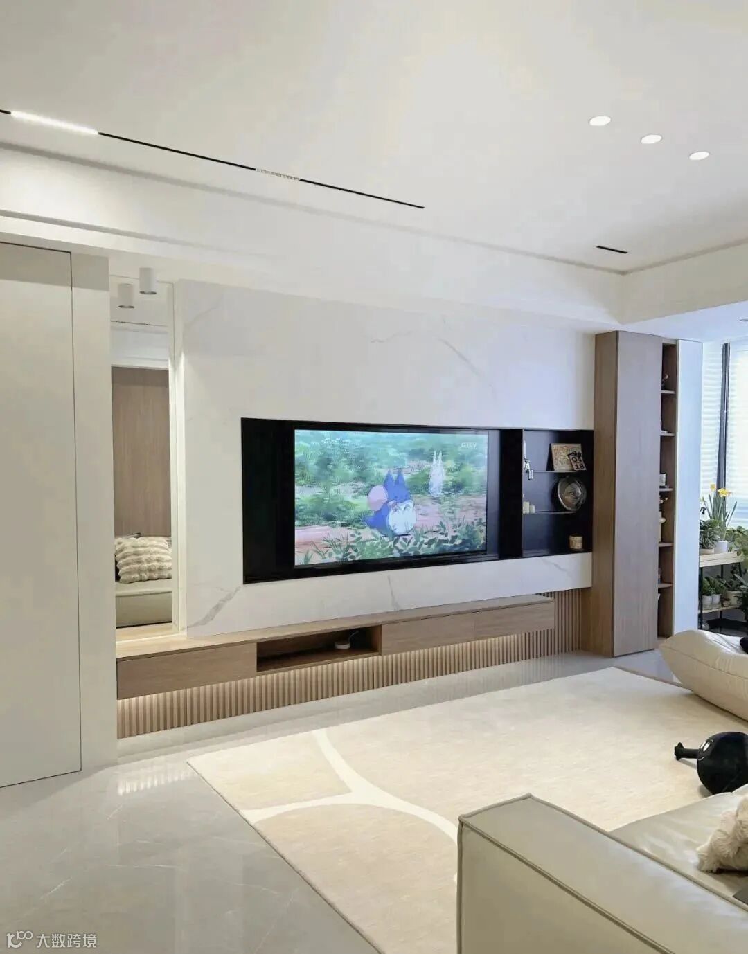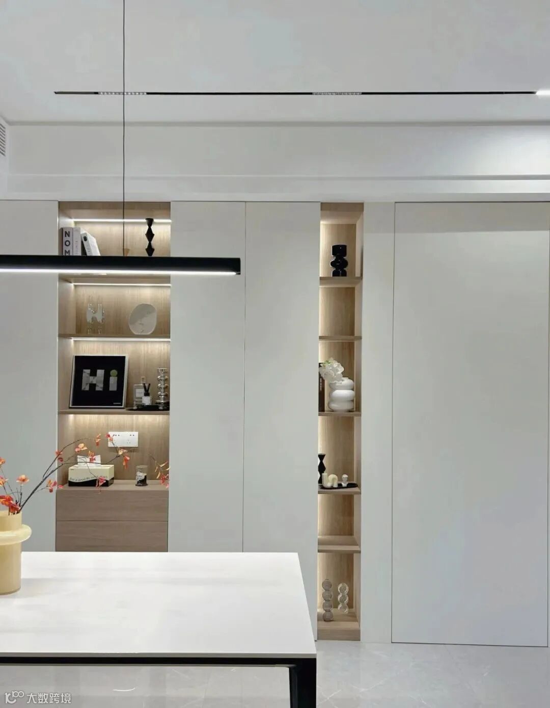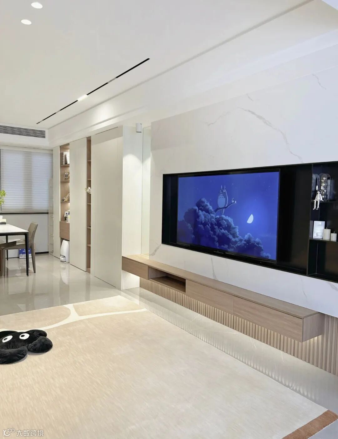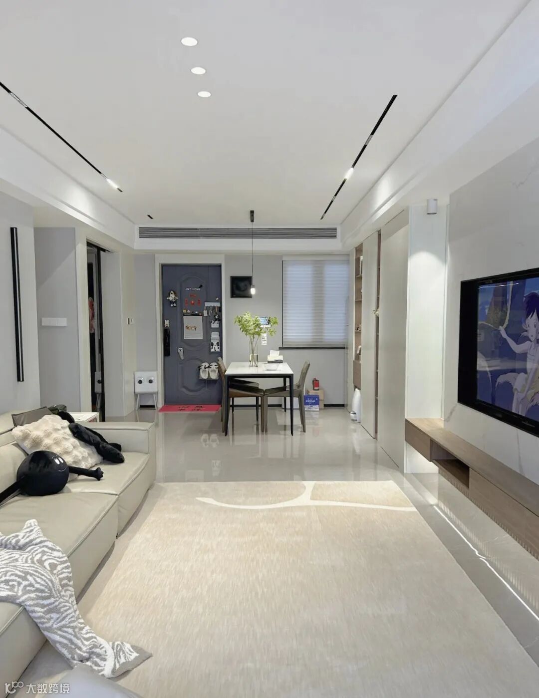 射灯加磁吸轨道灯的搭配,不压层高,无主灯嵌入天花比明装大主灯简洁显大很多。