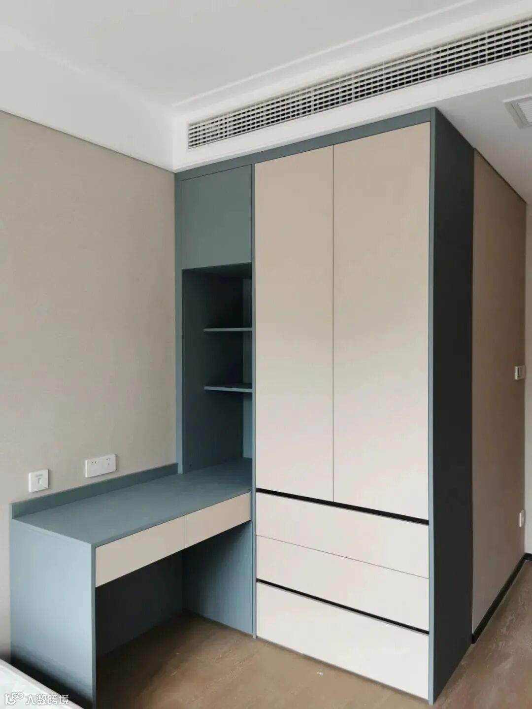 大多数卧室用的都是这种衣柜,一柜到顶能充分利用垂直空间,顶柜可以收纳床品和换季物品,下柜收纳日常使用衣物。