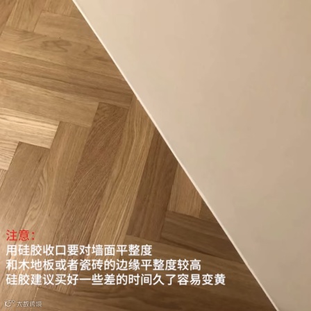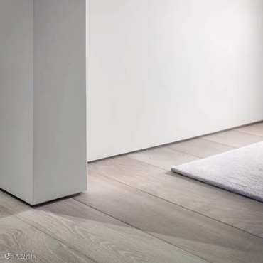 踢脚线主要是用来防止拖把的污渍蹭到墙面和收木地板或者瓷砖与墙面的口的。踢脚线的选择建议越简单越好,尽量弱化它们的存在感,两公分的木踢脚线或者金属踢脚线都是不错的选择。颜色的选择可以和地面或者墙面的材质同色,如果够窄也可以选择黑色。如果预算高,可以选择胶粘木地板,因为它热胀冷缩的系数比较低,木地板就可以紧贴着墙面直接用硅胶收口,如果是瓷砖就不需要考虑热胀冷缩了。