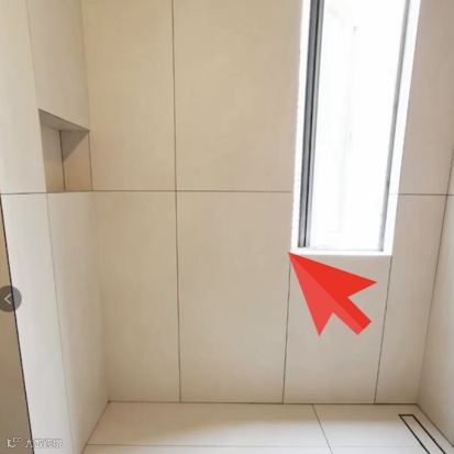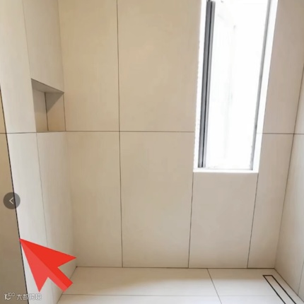 卫生间还有一个非常重要的细节,就是一定要给瓦工师傅看瓷砖对缝,因为需要提前花时间去排版、切割。有些瓷砖商家也会出图纸,可以提醒他们出个瓷砖对缝的图纸,让师傅对着图纸去贴。有壁龛的也要注意,瓷砖对着壁龛的边来,窗户也是一样的。