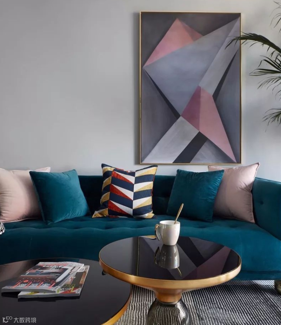 大型装饰物可能是瓷器,花瓶、蜡烛或者小型雕塑。这时候靠垫和这些主要装饰物颜色保持一致,既可以避免色调太乱,又可以营造出一个主打氛围。