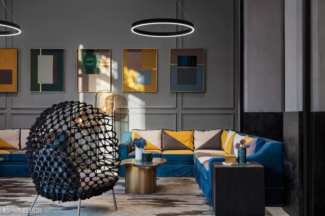 比如下图沙发色为橘黄色,地毯色为蓝色,稍微有些沉闷。