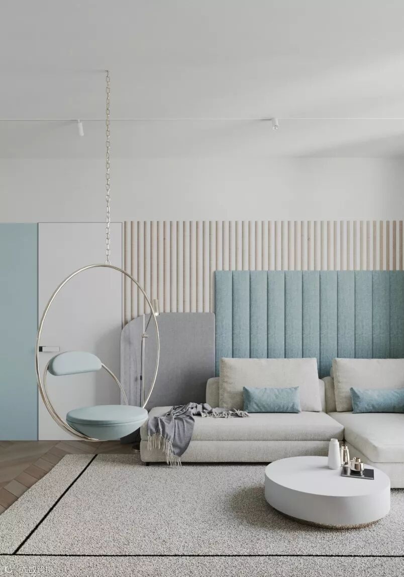 覆盖面积大的地毯更是这个道理,纯彩色的话会显得颜色过重,几何条纹地毯才点到即止,敞亮宜人。