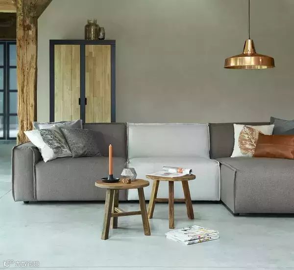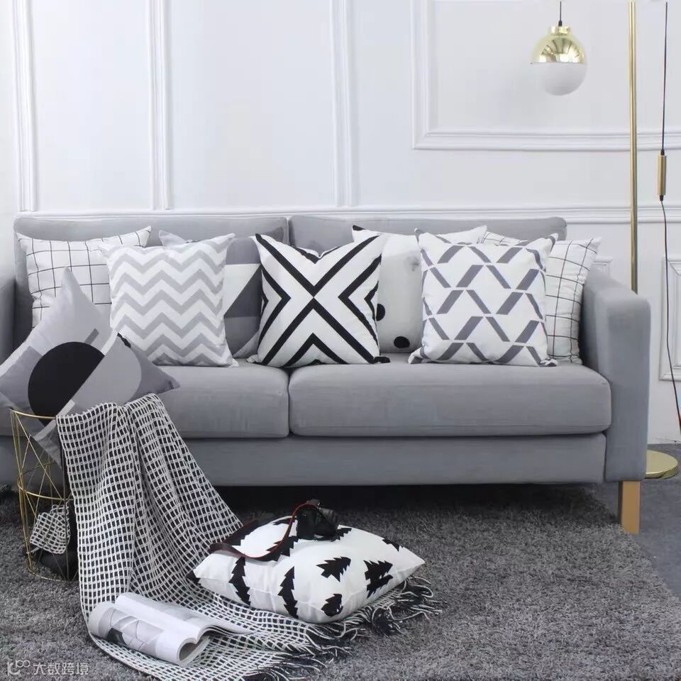 中性色靠垫既可以选纯色,也可以选几何花纹,另外一个带沙发色的则最好选几何图纹,不然太闷。
