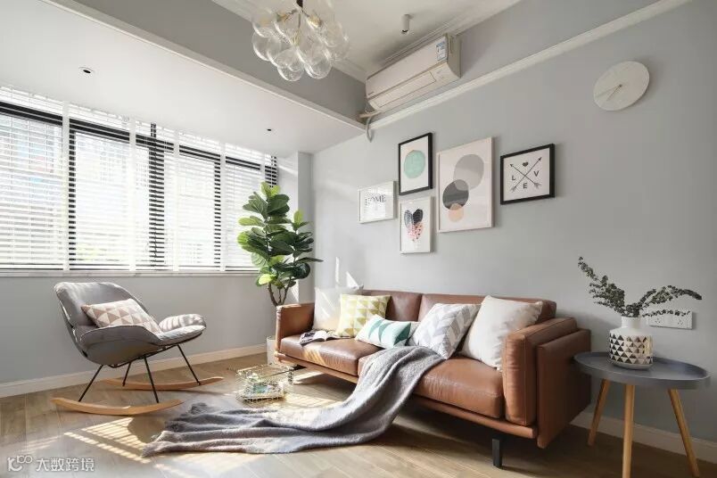 常见的皮沙发也适用这种配色方案,比如“中性色靠垫+几何靠垫”组合。