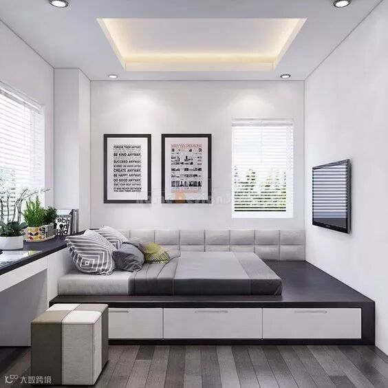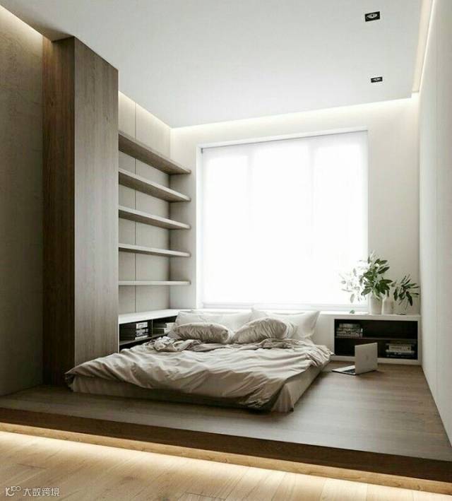 榻榻米的位置“挨墙而立”,整个空间就会显得更为宽敞和整洁。在榻榻米下方设计矮柜,或在墙面“偷”点空间出来,谁说小户型不能承载品质生活呢?