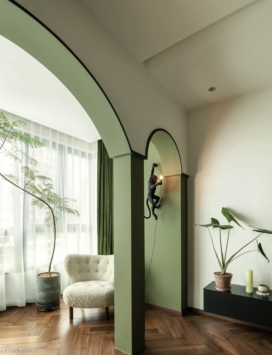 近几年大火的拱形门洞就是「南洋风」元素,利用曲线凸显空间慵懒之美。