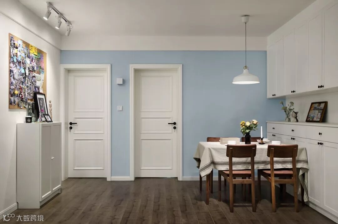 门套一般和门扇用同样的颜色视觉效果更佳统一,包括踢脚线,当然如果不同颜色搭配得当也可以做出意想不到的好效果。