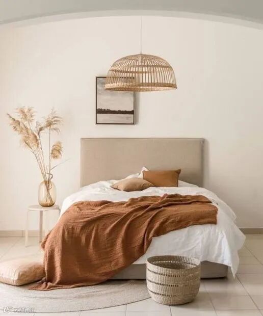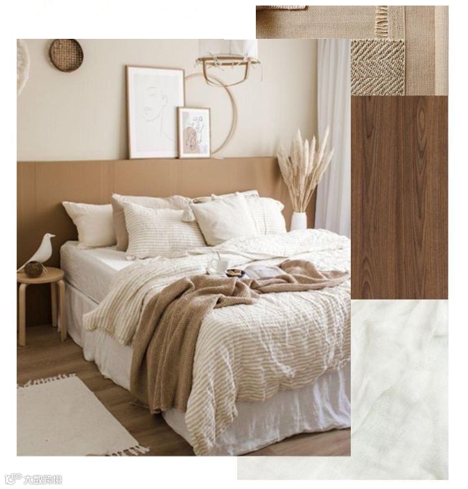 棕色搭配米白,恬静柔和的暖阳焦糖,带给卧室舒适和