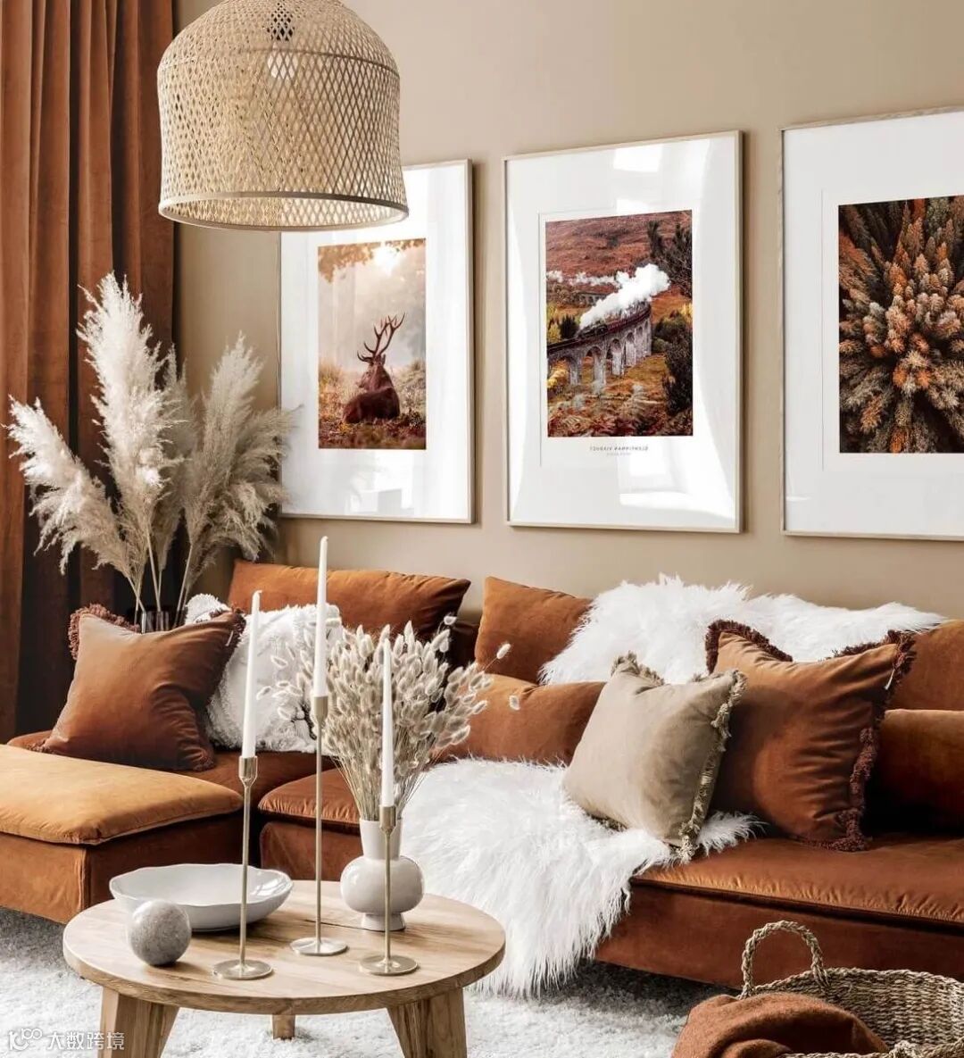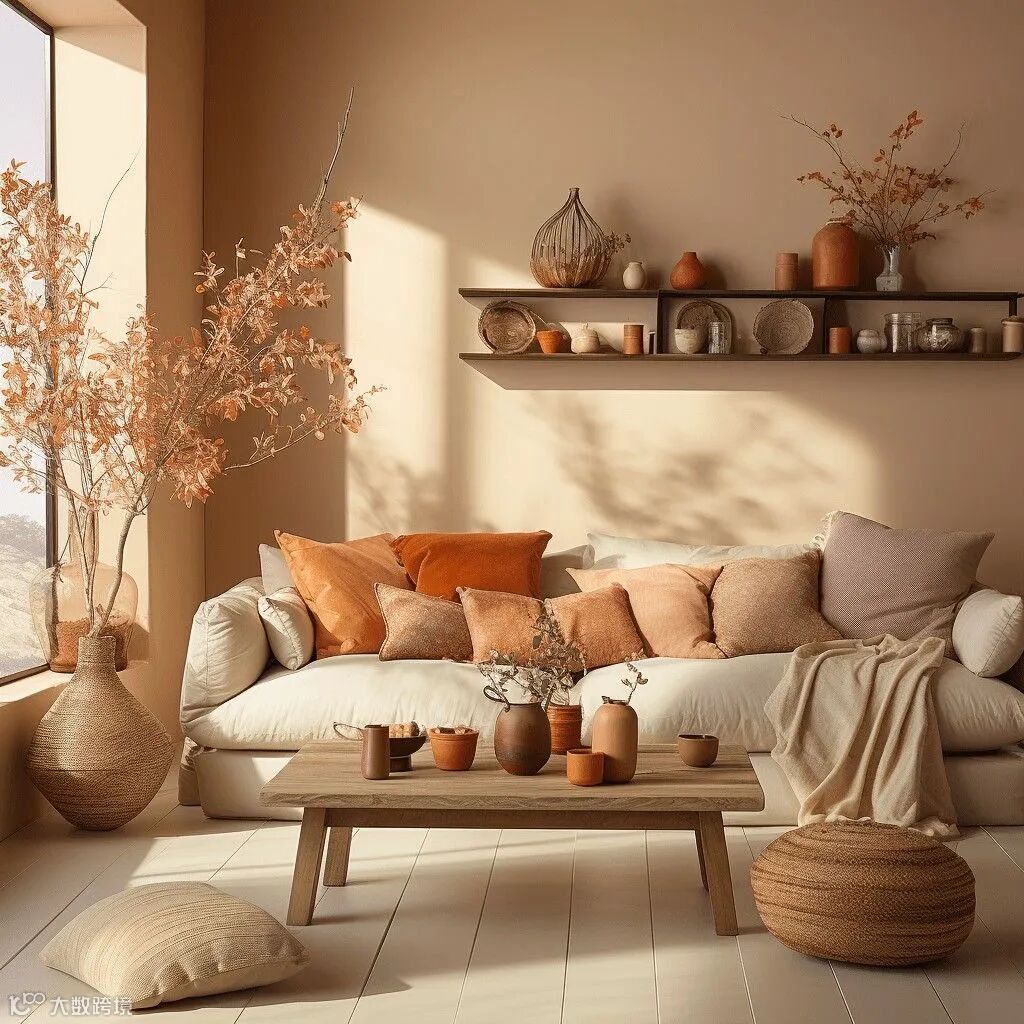 这类色系在软装搭配中可以营造出一种温暖、舒适和高级的氛围。