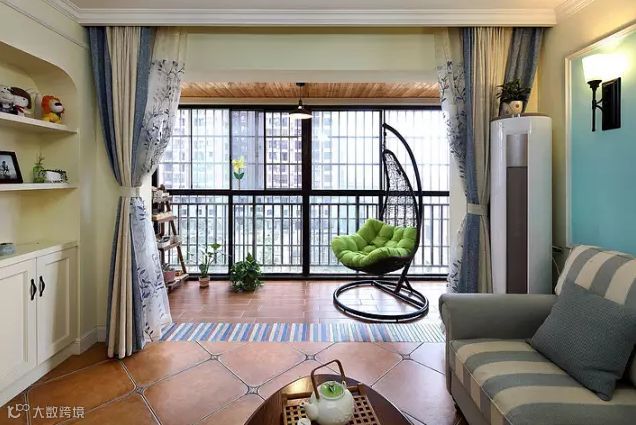 对于地中海风格来说,将窗帘挂在门垛旁,还是一种层次感的塑造,空间不会突然一块空荡荡,显然窗帘也是一种装饰手法。
