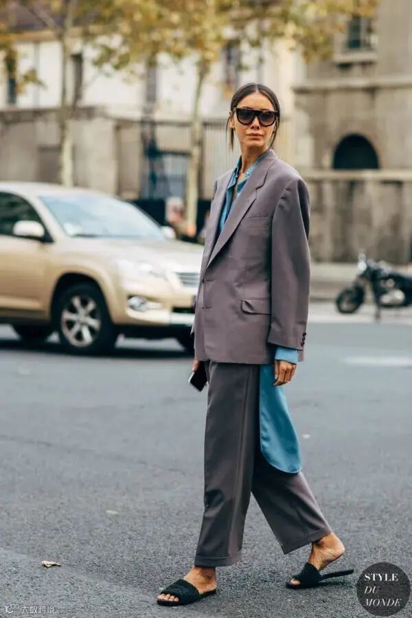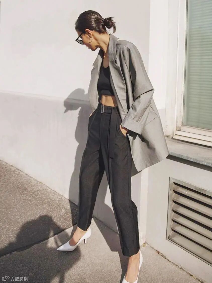 若是要将高级灰再穿出一些些酷酷的潮流感的话,那就要祭出另一百搭利器:黑色了。灰色和黑色的强强联合,打造低调又高级的造型。