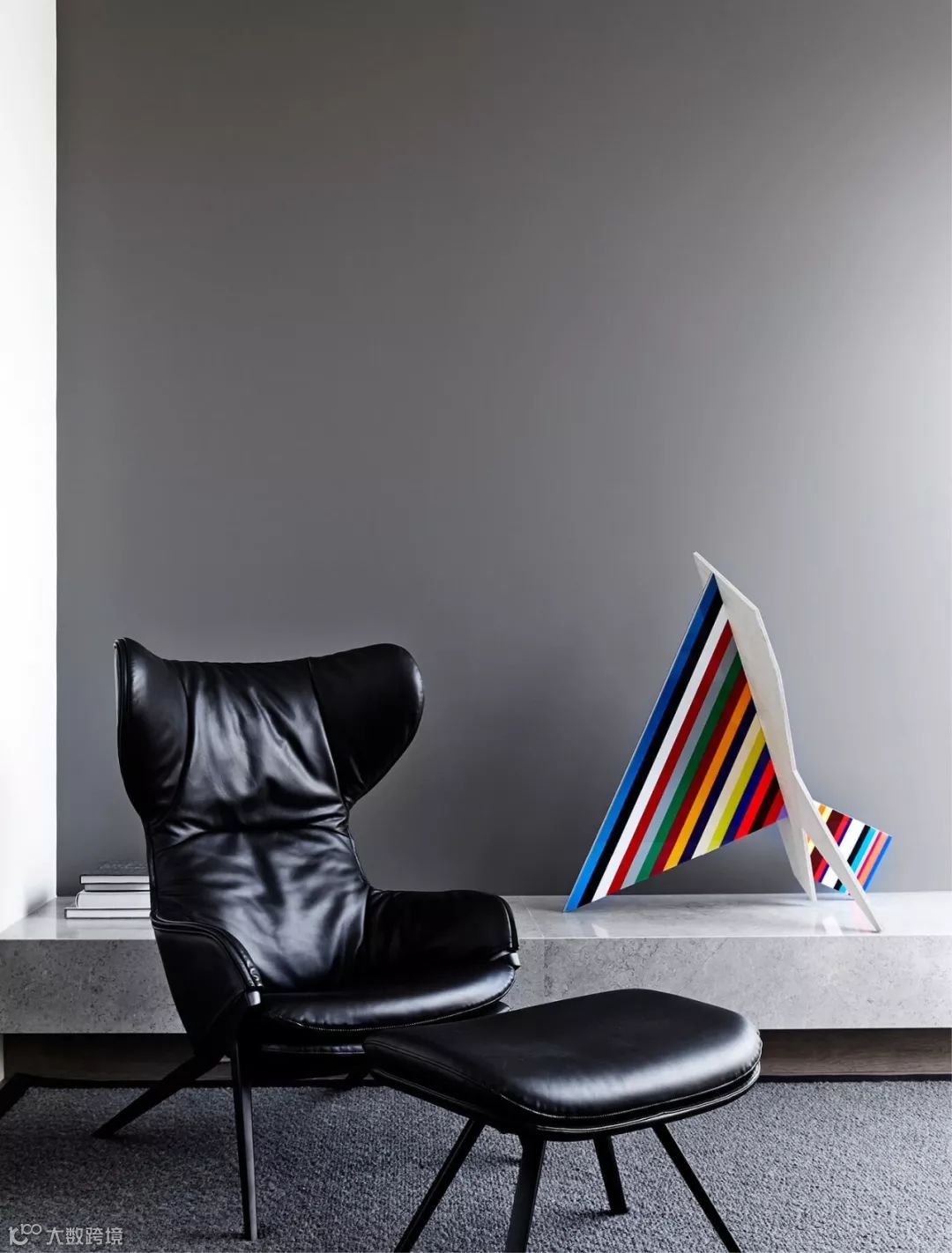 简约大气的高级灰与亮丽的色彩不谋而合,简练,硬朗,魄力十足,空间恢弘霸气。
