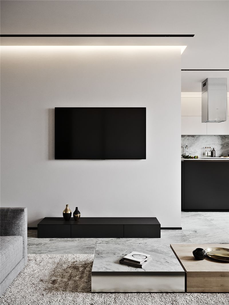 高级灰的色调简约而不简单,冷峻又温度。极黑与极白现代简约被演绎的淋漓尽致,整个空间格调满满。
