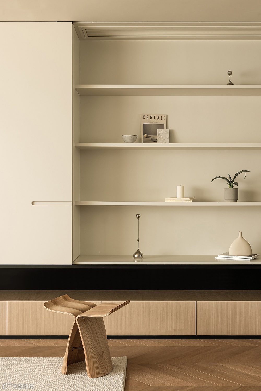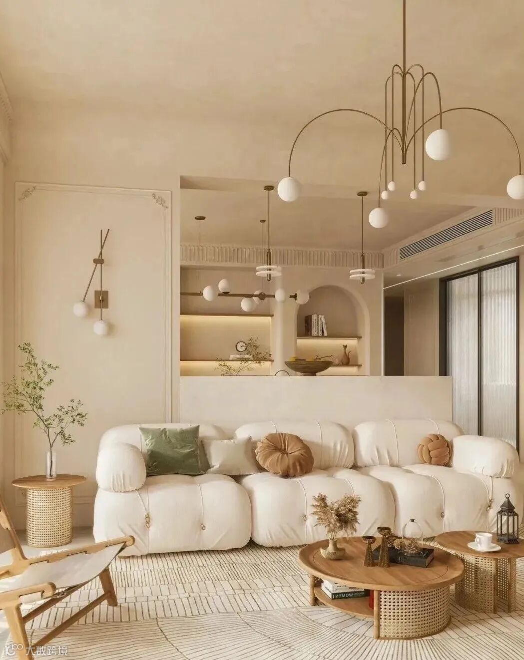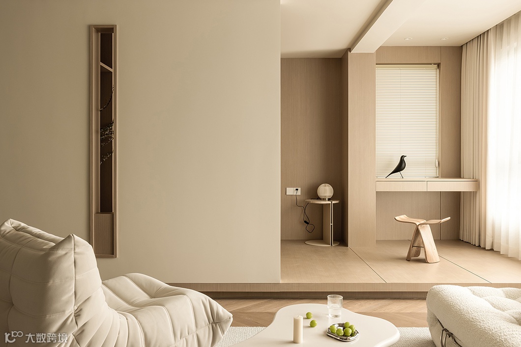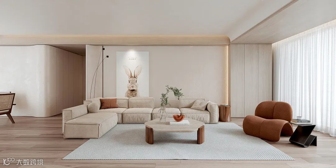 与其说奶油风是一种设计风格,不如说是一种色系——以奶咖色打底,整体采用低饱和度的色彩,让空间整体呈现被奶油包裹的温柔氛围。