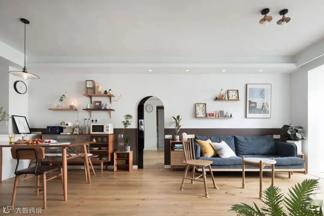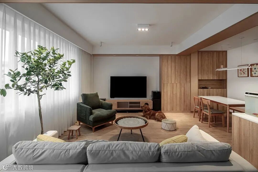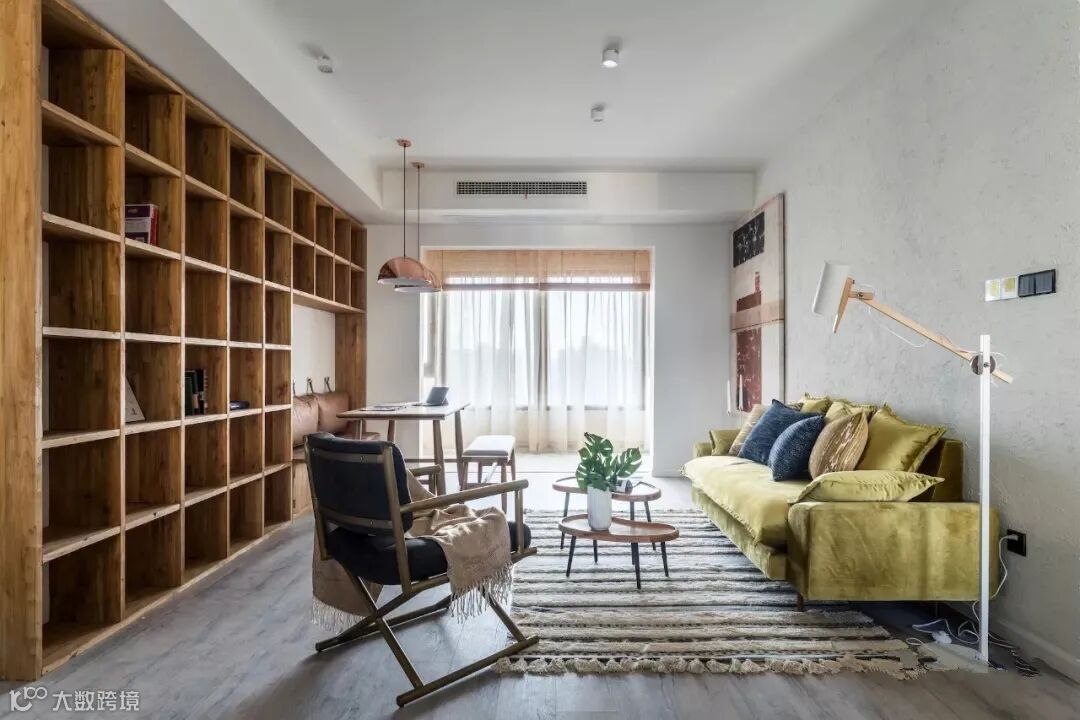 日常接待亲朋好友的需求少,客厅甚至可以和卧室连接在一起。若是不能拆墙,那么大胆地将门洞扩开,装一扇双开门,能够随时阻隔和打通空间,收放自如。