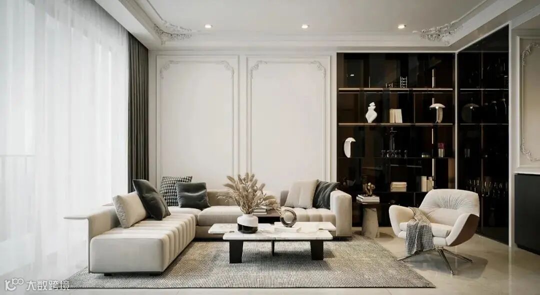 ②整墙铺,配合石膏线条,让空间更精致高级,轻奢范满满!