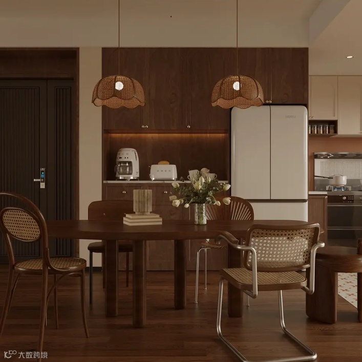 美拉德在家装中的风格非常明确,但并不单一。不会仅仅只局限于棕色这一色系,棕色系一直都是主色调。再搭配了不同深浅的同色系,例如大地色、咖色、杏色等,即使色彩属性相同,也能够展现出意想不到的层次感!